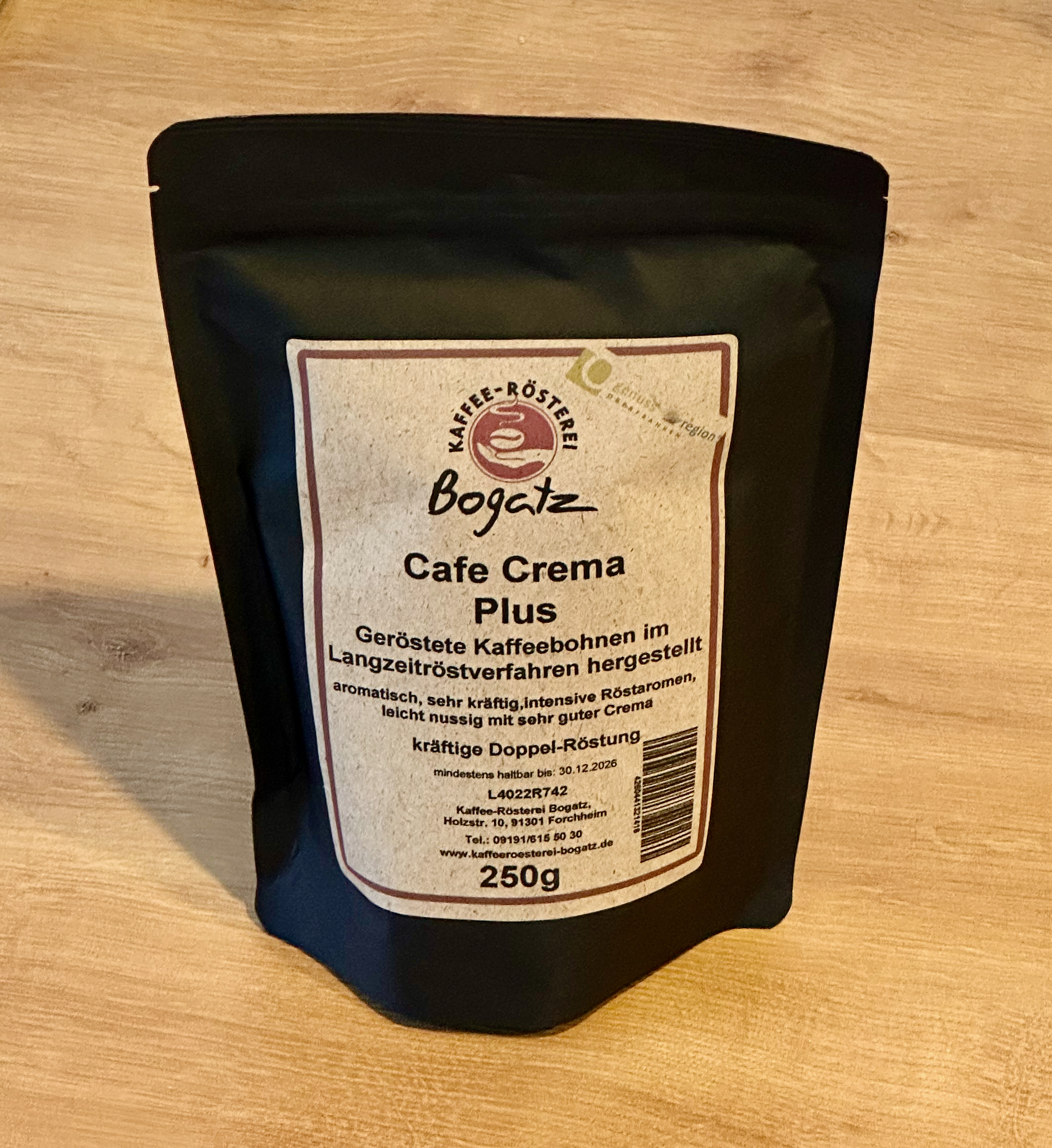 Ein sehr intensiver doppelt gerösteter Kaffe, hergestellt im Langzeitröstverfahren. Die sehr dunklen Bohnen haben nahezu keine Säure und der Kaffee schmeckt mir (Marc Julian Schwarz) daher sehr gut.